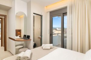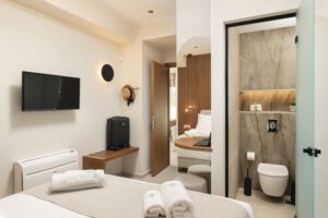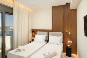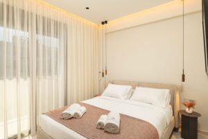 The apartment is a penthouse and is located very close to the center of Chania city, providing an escape from the hustle and bustle of the city, while offering easy access to all the cultural, gastronomic and entertainment pleasures that urban life has to offer. In the private parking of the apartment you can charge your electric or hybrid car and with a few minutes of driving you will be on the National Road to head to the unique beaches and attractions of Crete.