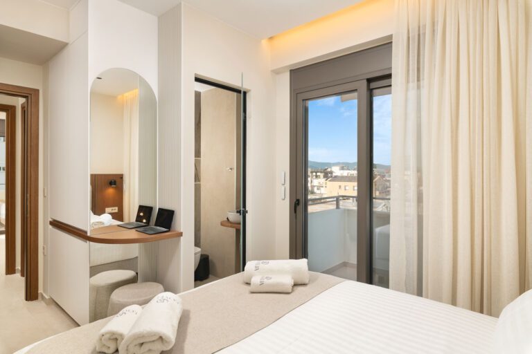 The apartment is a penthouse and is located very close to the center of Chania city, providing an escape from the hustle and bustle of the city, while offering easy access to all the cultural, gastronomic and entertainment pleasures that urban life has to offer. In the private parking of the apartment you can charge your electric or hybrid car and with a few minutes of driving you will be on the National Road to head to the unique beaches and attractions of Crete.
